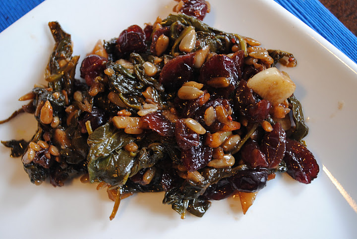 Baby spinach with sunflower seeds and craisins