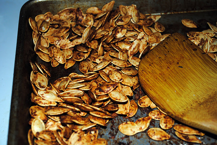 - 1 c. pumpkin seeds (do not wash them after you remove them from the pumpkin. The gooiness adds flavor!)