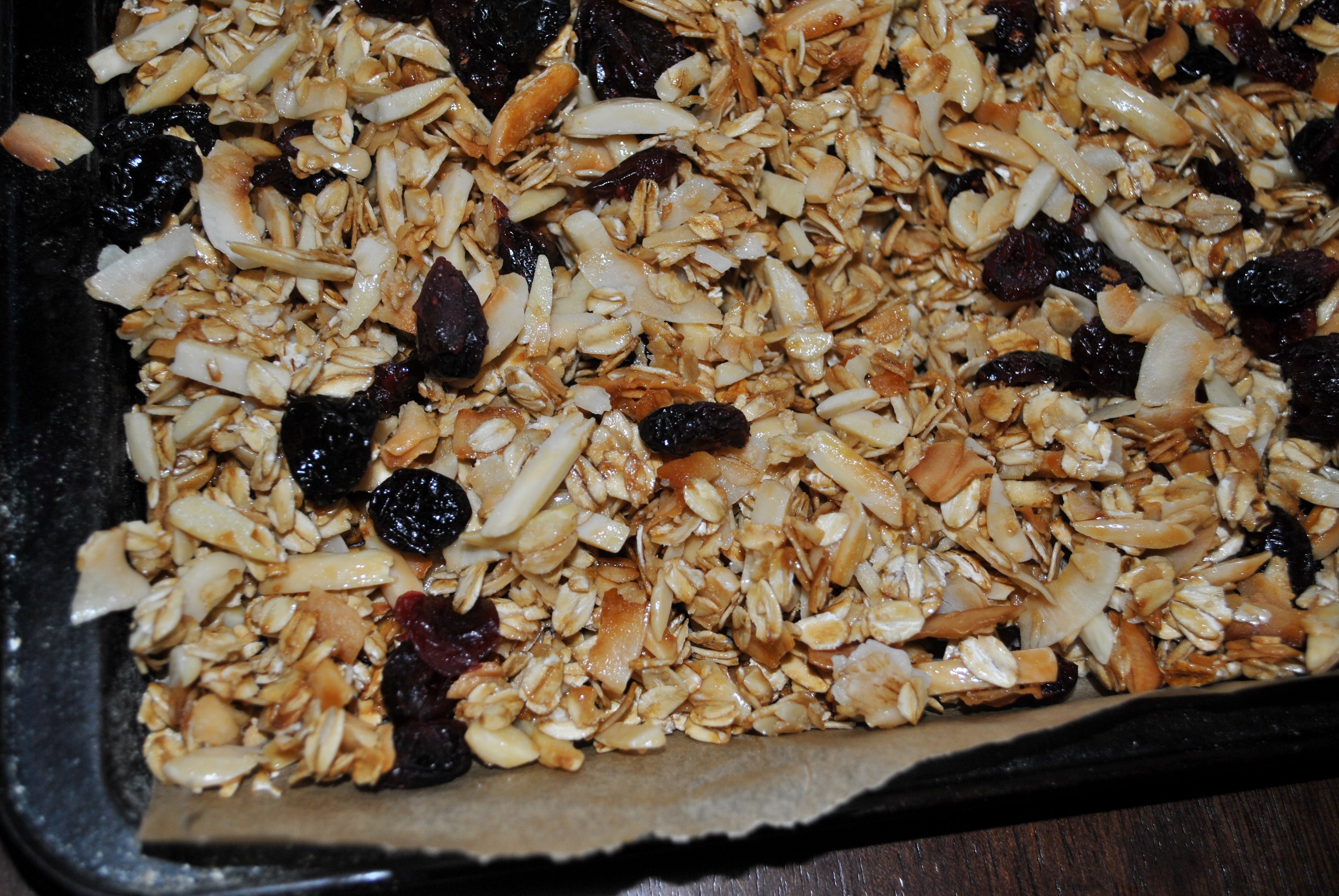 After baking, add dry cranberries (or other dried fruit) and mix again.