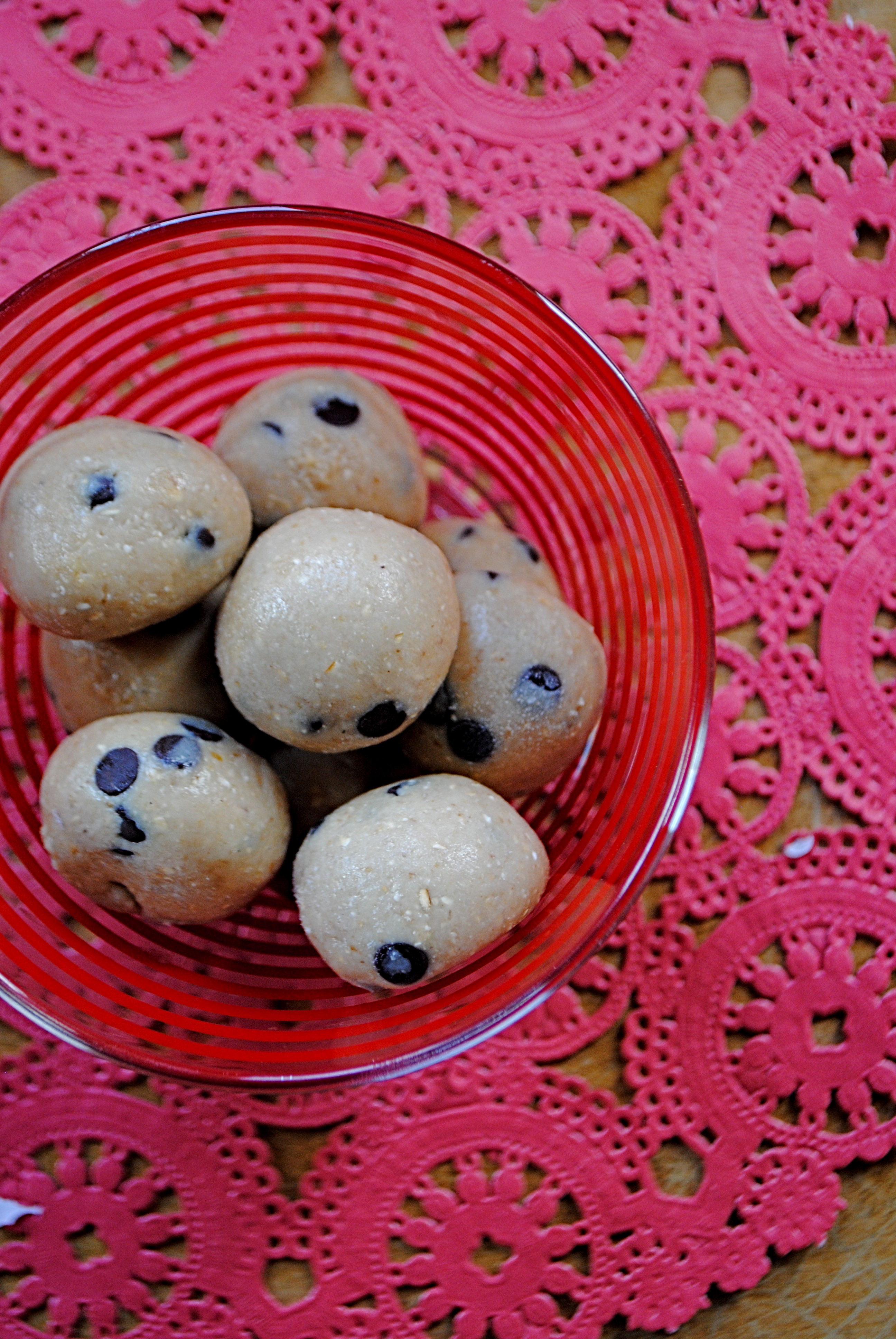 - Roll the dough into approximately 12 chocolate truffle-sized balls. Enjoy immediately or store in the fridge/freezer for later.