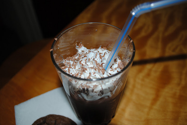 3 T melted vegan chocolate (the original recipe called for Hersey’s syrup but I wasn’t feeling the chemicals in Hersey’s syrup so I just melted some vegan chocolate chip with a little vegetable shortening to thin it out)