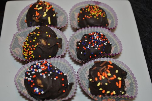 Guess what? Much like my favorite beer, Shipyard, Reeses aren’t vegan. Obviously. So when I need a fix of my favorite treat, I turn to this recipe. It’s delicious! I like to make a batch and then keep them in the freezer so if I have an urge for a vegan friendly reeses sundae (So Delicious Vanilla Icecream, melted Earth Balance Peanut butter with a little earth balance butter in it, topped with one of these…mmmm…..), I have stash ready available. Or, if I want to use them for baking, like chocolate cookies with crushed up peanut butter cups, I don’t have to make these first and wait until they’re chilled.