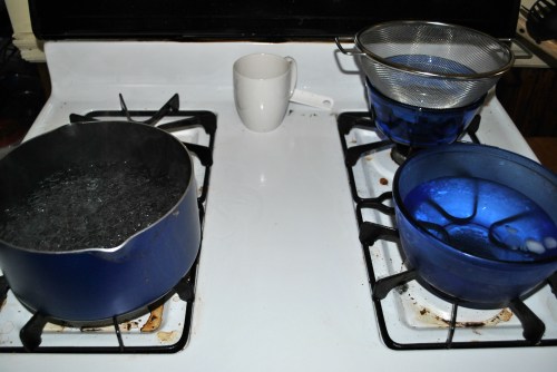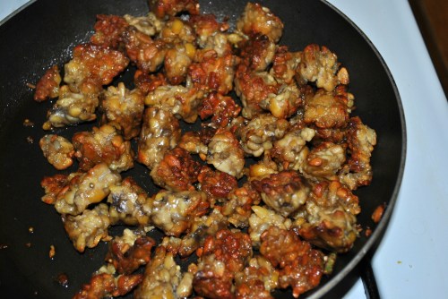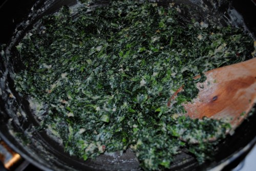 Heat oil over medium -low heat in a medium sized skillet. Add the onions and the garlic and saute for 2-3 minutes. Add the tomatoes, stir and cover, cooking until the tomatoes are soft and mushy. This should be about 5 minutes. My goal here was to create a really flavorful oil base to cook the kale in. Once the tomatoes are soft, add the kale and toss so it’s covered in the oil. Cover for 5 minutes until the kale and bright green and cooked down. Give it another good toss. Reduce the heat to low.