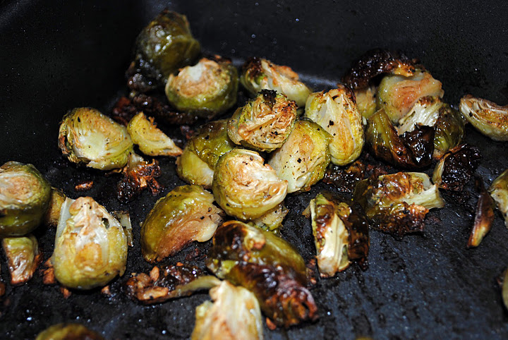 Bake for 40-50 minutes until caramelized to taste, tossing once about 25 minutes into cooking time. Remove from oven and toss Brussels sprouts in the pan scraping up brown bits into the sprouts.